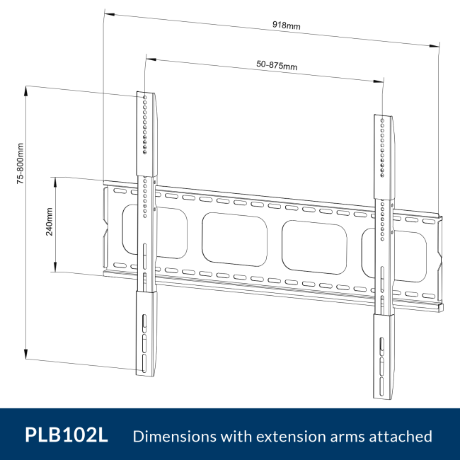 This XL TV bracket kit is the perfect way to wall mount your TV on your wall. It's heavy duty, adjustable, padlockable & easy to install. The kit includes the PBL102L tv bracket + specially designed extension arms to extend the maximum VESA pattern compatibility to 800x600.