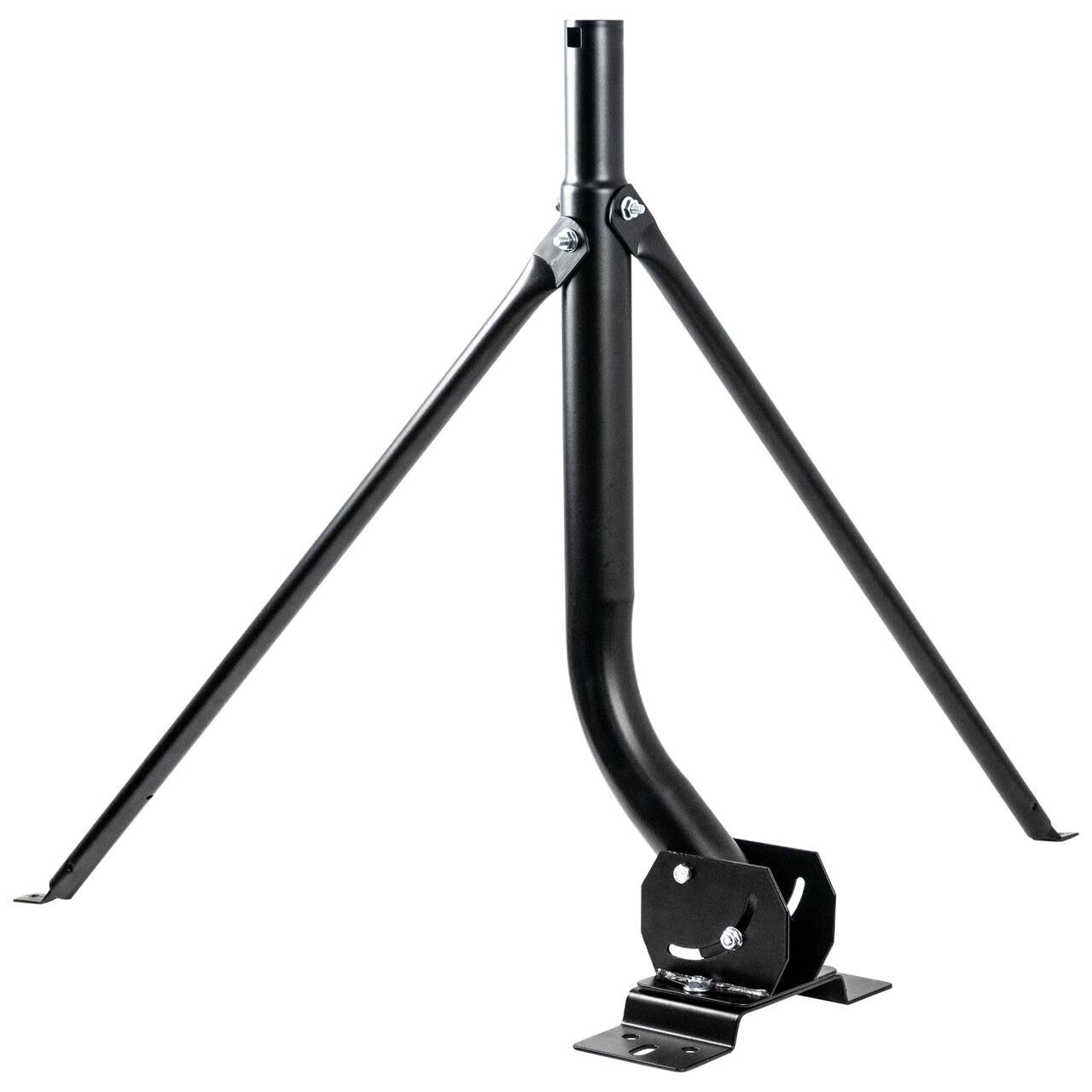 The mount can be used with or without the included telescopic stay bars, offering a sturdy setup for various satellite dishes and antennas. All necessary accessories are included, ensuring quick and easy assembly.
