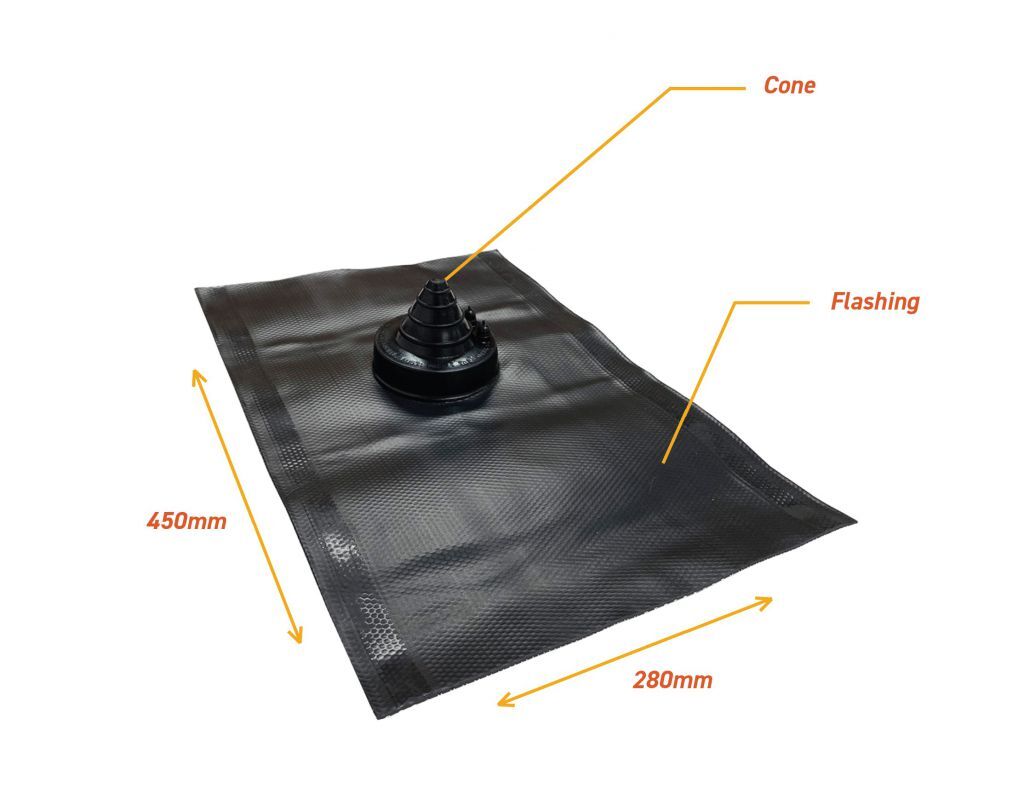 Rubber flashing, creates a water proof seal around TV Antenna rafter mount.